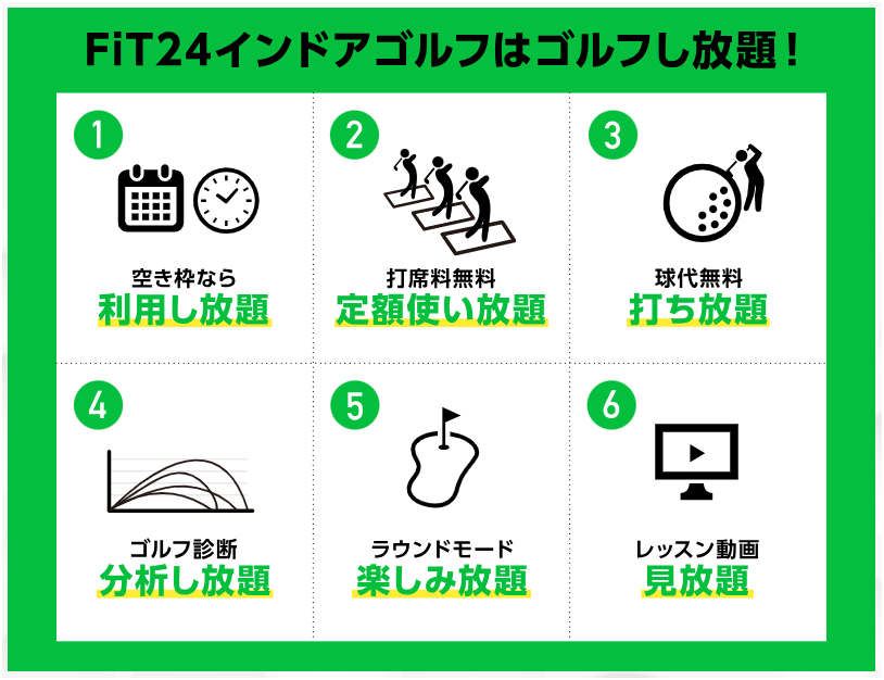 仕事が忙しくて練習に行く時間がない、自己流ではスコアが伸びない…そんな悩みを抱える社会人ゴルファーに人気なのが「FiT24インドアゴルフ」です。